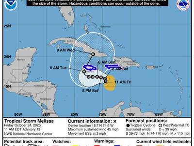 Expected Cat 4 Hurricane Melissa could be ‘catastrophic’ to Caribbean, but Florida effects... Local News : Orlando Sentinel 10/23 11:54P Richard Tribou
